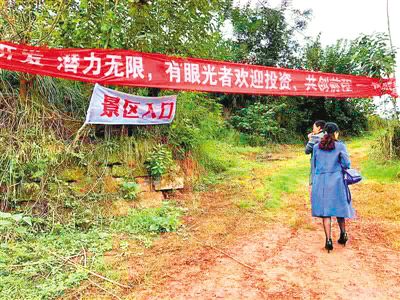 在“我本斯文”上传的图片中,记者注意到,这个所谓的“景区”杂草丛生,没有太多开发的迹象。路口处的横幅上,还有“开发潜力无限,有眼光者欢迎投资,共创前程”的字样。