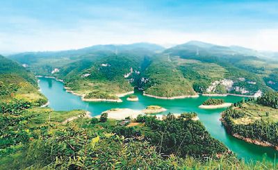 清溪峡上,撑一叶轻舟缓行,湖水似碧,绝崖如画,鸳鸯同戏,飞鸟高歌;双河洞中,赏玉笋奇石各异,曲石花莹,水润石溶,百洞相接,参差峥嵘;大裂缝下,听地下河水奔涌,缝隙九曲,且伫且行,起起伏伏,驰想纵横……