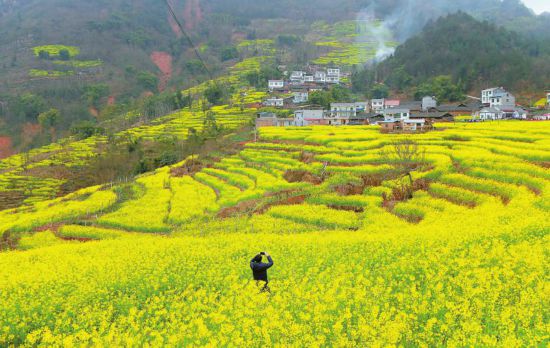 2月10日,宜宾市屏山县中都镇油菜花铺满山野,透出春的气息。记者 何海洋 摄