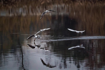 据一位观鸟爱好者介绍,红嘴鸥又称水鸽子,数量大,喜集群,因为嘴和脚皆呈红色,身体大部分羽毛为白色,眼睛后方有星月形斑点,因此很好辨认。每年冬季,为了躲避寒冷的气候,红嘴鸥会穿越大半个中国来到南方过冬,春季再集体返回繁殖地。