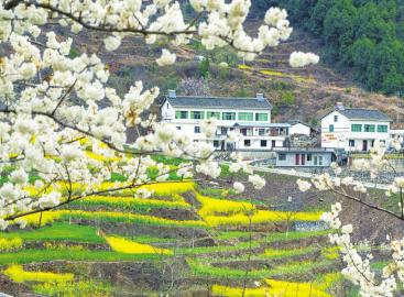 2月中旬,川北广元市山乡盛开的樱花。