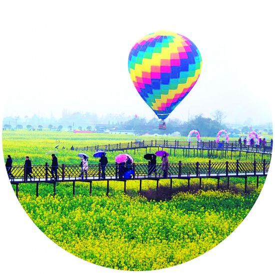闲游花海间,古香古色的农家庭院,弯曲灵动的湿地步道,高低错落的观景栈道,处处皆是美景。据介绍,菜花公园周边配套开办了农家乐30余家,设置了农耕文化主题体验区、特色美食展销区、生态特色农业产品展示及售卖区等;配套设置了观光小火车、自行车骑游、热气球观光等服务设施和丰富的游乐节目,进一步丰富了游客赏花时的体验感受。示范引领建设了垂钓、咖啡屋、民宿等,更增加了游客到西高旅游的乐趣。