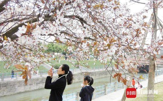 阳春三月,蓉城处处春花开。成都金沙滨河公园,沿河岸的10余株红叶李树花正开得如此烂漫。春光明媚的周日,这开得如云似霞的红叶李吸引了众多成都市民赏花踏春,人们在树下观赏着随风摇曳的花朵,掏出手机把迷人的春色带走。
