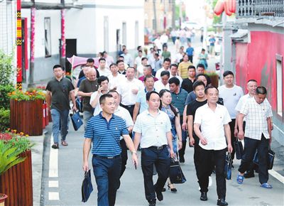 莲花县沿背村,在甘祖昌干部学院学习的学员放学后返回各自居住的民宿。