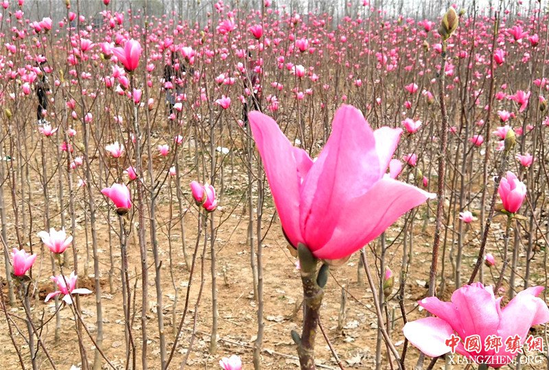 郯城县马头镇地处沂河岸边,土壤肥沃,水资源丰富,适宜花卉苗木的栽培。马头镇党委政府因势利导进行供给侧结构调整,以农民种植专业合作社社长吴清银为“龙头”企业,搞好“娇红一号”玉兰新品种的更新换代,并大力发展稀、奇、特等绿化苗木,促进了农民经济的增长。其中“娇红一号”发展近200亩。 她以品种纯正,花色鲜艳夺目,成为城市绿化和新农村美化的“新宠”。(特约通讯员:高军 文/图)