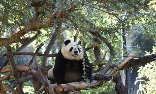 资料图:美国加州圣地亚哥动物园内的中国“国宝”大熊猫“白云”。中新社记者 张朔 摄