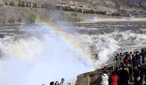 3月30日,在山西吉县,游客观赏黄河壶口瀑布。