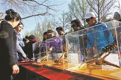 3月31日,北京市公园管理中心在天坛公园皇乾殿举办2019年生物多样性保护科普宣传月暨爱鸟周系列活动启动仪式。市属11家公园及中国园林博物馆将面向游客市民举办近60项主题科普活动。北京青年报记者了解到,今年,陶然亭、紫竹院、玉渊潭公园将试点建成“自然生态主题观赏区”,向游客市民展示市属公园生物多样性的保护成果。