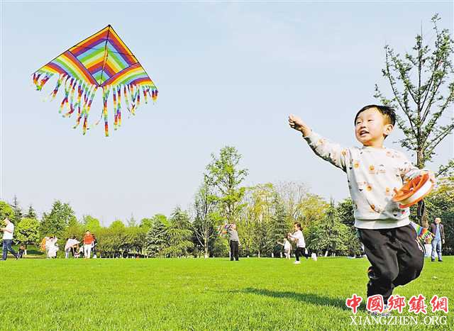 渝北 龙塔街道鲁东社区,小朋友在放飞风筝。通讯员 黄绍芬 摄