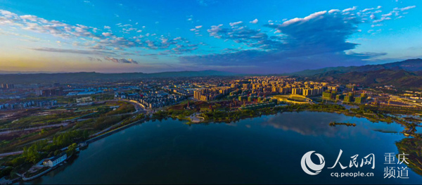 双桂湖与梁平城区交相辉映。高小华 摄