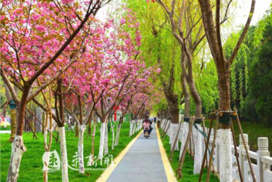 如今的泗洪城区河道岸边,东风满,烟柳万重;桃花醉,香风阵阵。柳树下有健身的老人,桃花边是赏花的姑娘,还有不时光临的鸟儿,人与自然和谐相处。这是泗洪园林的成果,也是以后的方向,今后,将会以更加蓬勃的姿态来建设园林,不断提升城市内涵,想群众之关心、民生之关切,深入持久地推进生态文明建设。(孙嫣然)
