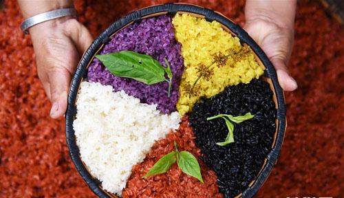 每年农历三月十五前后,贵州省黔东南苗族侗族自治州台江县苗族同胞有制作“姊妹饭”、喜迎姊妹节的习俗。“姊妹饭”是使用不同植物的树叶或花朵碾压成汁液作为原色,对糯米进行浸泡并蒸熟的五彩糯米饭。姊妹节期间,青年男子可以向心仪的姑娘讨要“姊妹饭”,姑娘们则通过赠送藏有不同物品的“姊妹饭”传情达意。