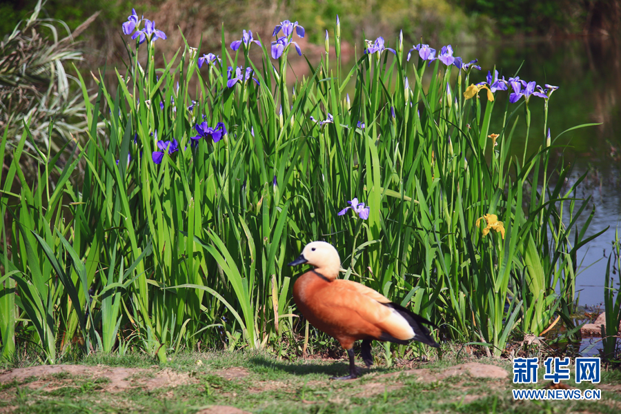 不止是游人,无边春色也引得几只鸭子流连光景,难舍离去。新华网发(刘磊 摄)