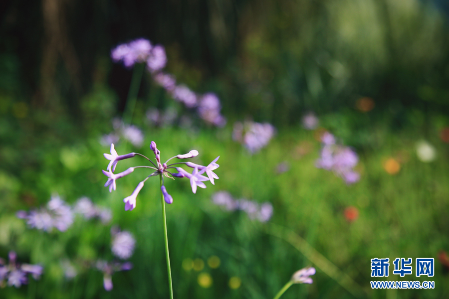 春风和煦,玄天湖景区,湖水宛如明镜,树木郁郁葱葱,繁花竞相开放,青草翠色欲滴。 新华网发(刘磊 摄)