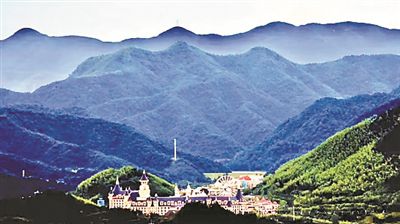 欧式城堡处在大山深处的绿丛中央,露出尖尖的房顶,如梦如幻。