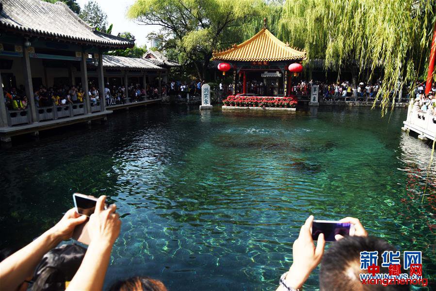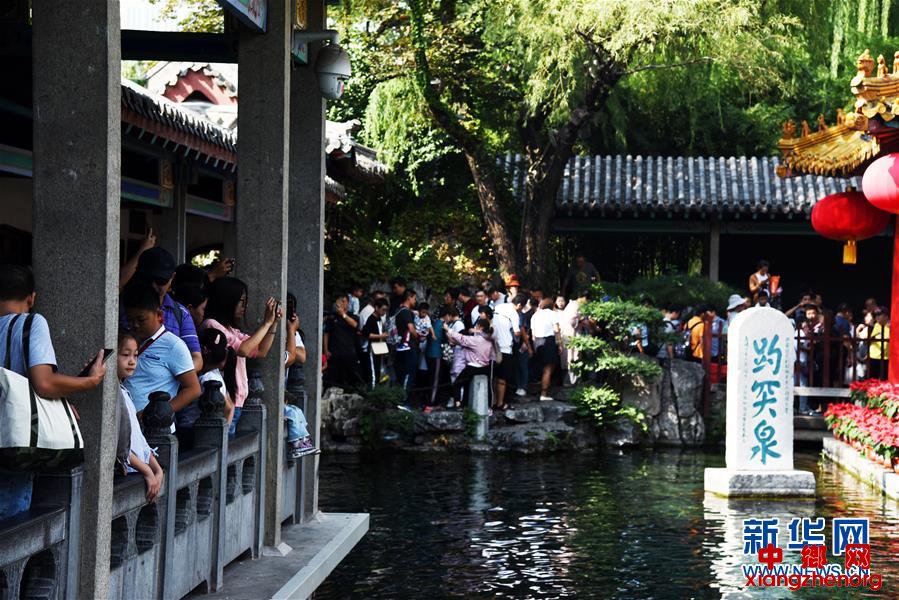 10月3日,游客在趵突泉景区参观。 当日,山东济南趵突泉景区吸引了各地游客前来参观。新华社记者王凯摄