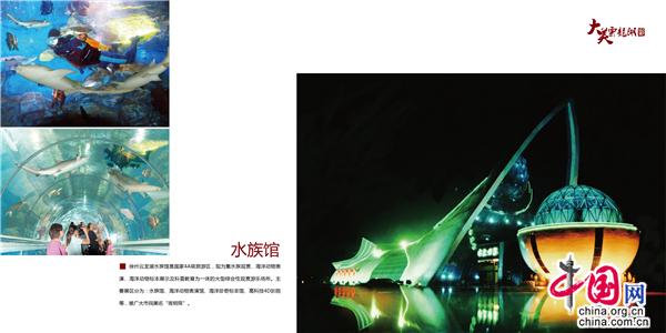 水上世界于1994年8月建成开放,是当时亚洲最大的淡水鱼展馆。2003年,又增加了大量的海水鱼种,建设了海洋珍奇标本馆和海狮表演馆,成为咸淡水鱼类以及野生水生动物的综合性展出和表演场所,也是省、市科普教育、科学研究专业基地;现在的水族馆分为近海奇观、淡水生态、热带雨林、神秘文化、珍稀鱼类、海底隧道、互动多媒体、4D动感影院等八个主题展区共展示200多种10000余条珍稀名贵鱼类,其中有被称为“水中国宝”的中华鲟、扬子鳄、娃娃鱼、胭脂鱼、大鲨鱼、玳瑁、海龟、海狮等。