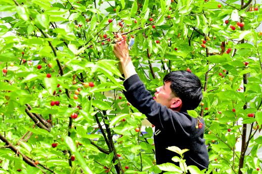 群众正在采摘樱桃。 通讯员 张晓勇 摄