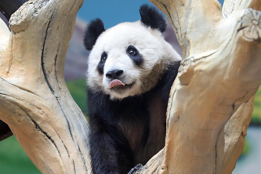 5月21日,大熊猫“青城”在鞍山市二一九动物园大熊猫馆适应新环境。 当日,两只分别来自中国大熊猫保护研究中心雅安碧峰峡基地和都江堰青城山基地的大熊猫“阿灵”和“青城”,入住辽宁省鞍山市二一九动物园大熊猫馆。经过一段时间的适应期,它们将正式与市民和游客见面。 新华社记者 姚剑锋 摄