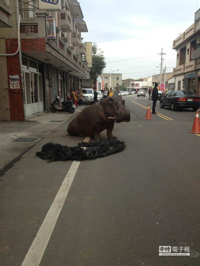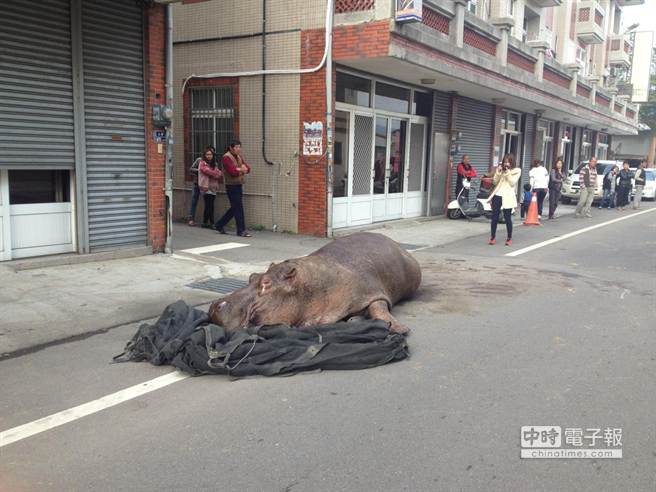 “马路上有河马!”苗栗县苑里镇山柑里下午有一只河马从货车上掉落,河马受伤倒在地上,一度挣扎爬起,引起围观民众惊呼。