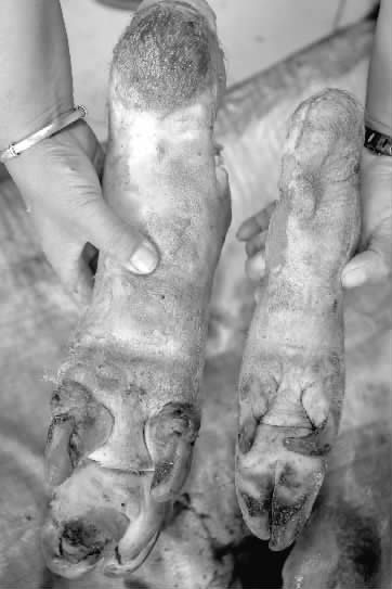 大白猪的“巨无霸”猪蹄与普通猪蹄