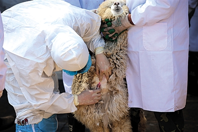 检疫人员说,羊驼其实很有灵性,在出国前它们就被本国的检疫人员打过针,所以看着这白大褂就害怕。别看是来自智利高原的神兽,“打针”也发怵。为了避免羊驼挣扎时受伤,检疫人员完全是人力来“控制”,一般由两人抱着,可遇到不买账的,检疫人员就会被一口唾沫啐到身上。