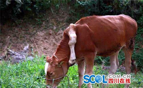 四川在线消息(四川在线记者朱荣杰)俗话说:“大千世界,无奇不有!”。这不,在巴中市南江县就出现这么一件“稀奇”事!有那么一头牛,居然在左肩胛骨附近长出第五条腿,不少村民都慕名前来观看。
