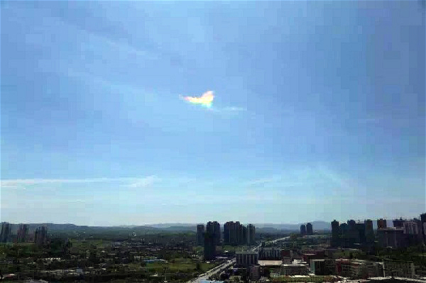 8月3日上午11时左右,在重庆市大足区的上空出现了一抹形似火凤凰的“七彩祥云”,宛若彩虹一般色彩分明,引得市民们纷纷观看拍照,记下这一美丽的景象。这样的景象大约持续了一个多小时,随后云朵便消散的无影无踪。