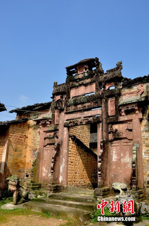 江西省赣州市会昌县庄埠牌坊是乾隆年间(1737年)建造的节孝石牌坊,精美雕刻是最大特色。柱前有两尊石狮,形态生动,具有较高的文物价值和观赏价值。古代建牌坊有着严格的等级制度,对牌坊的规模、用柱、牌楼多少,都因人因事不同而异;报建牌坊,必须由地方按程序上报,经官府乃至皇帝批准后方能修建。由于该牌坊一直处于无人管理的状态,出现人为的损坏和局部自然崩塌。此外,周围的民房挤占牌坊的空间,命运令人担忧。当地村民呼吁:牌坊能早日得到有关部门的维修和保护,让记载村庄历史且不可再生的文物保留下来,留住乡土文化的精神记忆。胡敦煌 摄