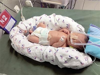 昨天上午,刚来到这个世界的阳阳仍躺在新生儿重症监护室的暖箱里,头部插着呼吸机。“孩子出生时的各项指标都还不错,身体和头部比例看上去都还正常。”为江海洪进行剖宫手术的市妇幼保健院产科病房副主任医师陈真介绍,出生时,阳阳的新生儿评分达到了10分。