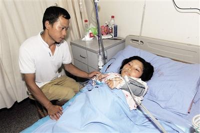 生了孩子后的江海洪与老公交流。 本报记者杨新宇摄