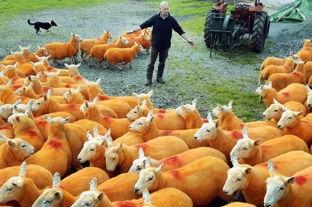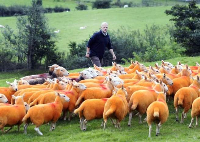 英国一地惊见成群的橙色山羊,但并不是突变,而是人为喷上的。一名男子四年来被人偷去300只山羊,令他相当烦恼,直到最近他终于想出解决办法,便是将所有山羊喷成橙色。