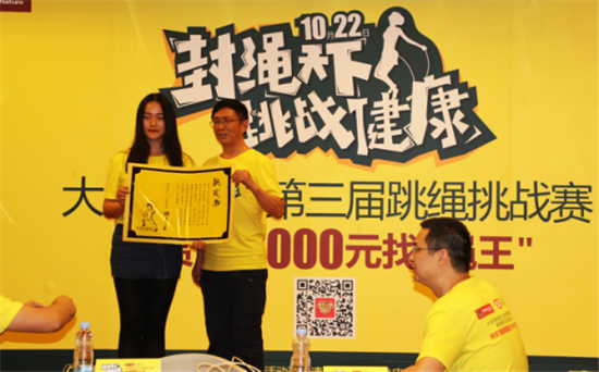 一个是国内家居建材行业知名企业,一个是年仅11岁的小女孩。他们之间能发生什么?9月底,广东顺德勒流东风小学的11岁学生肖韩香,在参加大自然家居举行的第三届跳绳挑战赛门店活动时,以一分钟354次的成绩,打破这家上市公司三年来的跳绳记录。10月11日,大自然家居在其广东顺德总部举行记者招待会,正式发布主题为“封绳天下、跳战健康”为主题的第三届跳绳挑战赛,并拿出十万重金悬赏跳绳牛人。