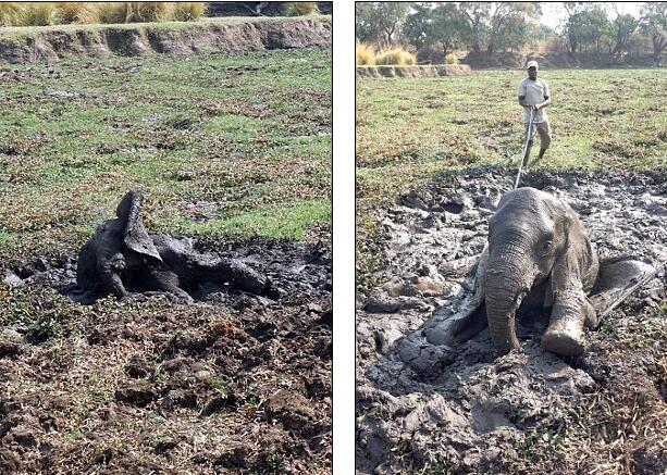 最早发现这头小象的是几名国家野生公园的工作人员,但是当他们想上前帮助这个小家伙时,它的母亲却出于保护孩子的本能对他们进行了驱赶,无奈之下,他们只能回到驻地并通过无线电向其他人寻求帮助。