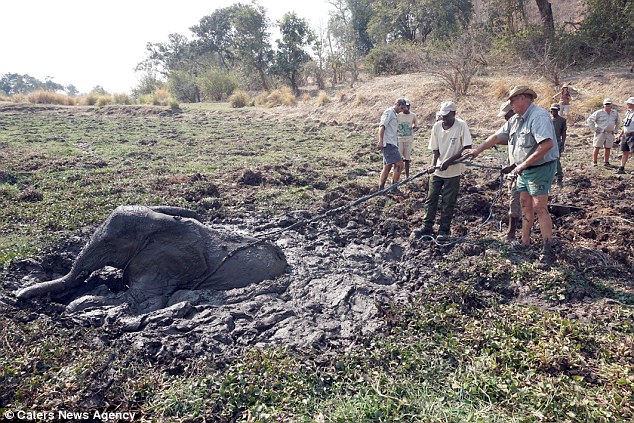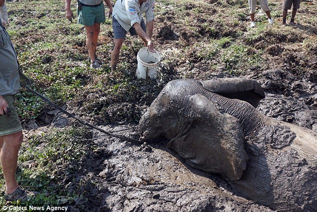 据了解,这些好心人是一群水牛猎人,当他们发现了这个被困在泥地里的象宝宝时,他们决定尽自己所能帮助它脱离泥潭。