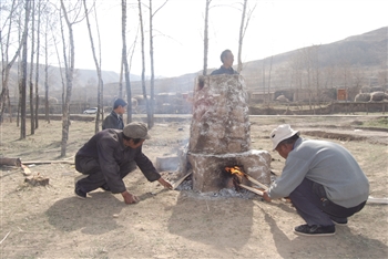 接下来,就是七七四十九天的守孝期了。在这四十九天中,孝子们不理发,不刮胡须,每天傍晚要到临时埋葬骨灰的地方煨“斯佐尔”(斯佐尔:土语,一种油面。)祭奠。