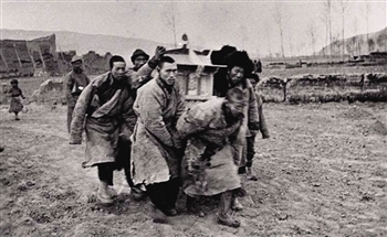 第二天清晨,雪停了,黑压压的送葬队伍出发了。旦见阿爸兄弟三个和旦见一起抬着桑杰阿爹的灵轿,走在队伍最前面。送葬路上遇到的村人们都自觉地加入了送葬队伍,等赶到桑杰阿爹的塔布面前时,已经有近两百人。