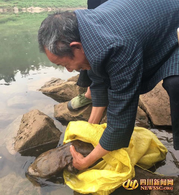 该区域有记录以来最大野生娃娃鱼 放归自然