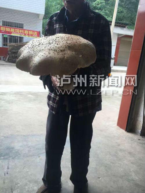 前不久,泸州市纳溪区大渡口镇太和村村民金小平在上山寻找中草药时,无意间发现一朵大型蘑菇。金小平说,他从来没见过这么大的蘑菇,因此把它捡回家。村里人不认识这是什么蘑菇,更不知道能不能吃。
