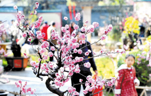 图为黑龙潭盆栽梅花桩景花开正艳。(记者杨艳辉摄 廖晶蓉文)