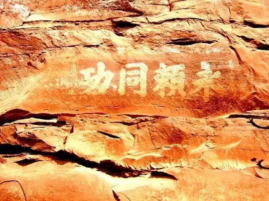 书写在安边与屏山交界的火烧岩绝壁上的“永赖同功”四个大字。