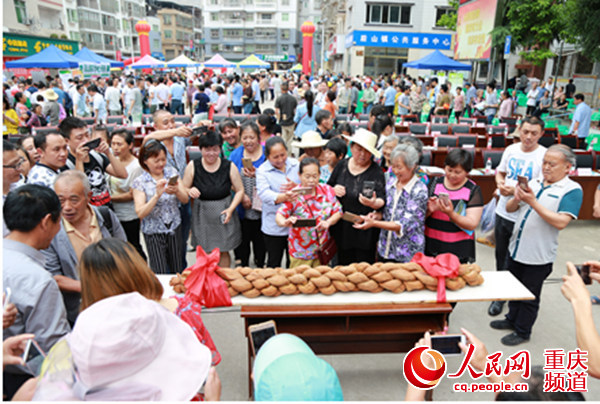 6月8日,万州区后山镇第二届“麻花节”开幕,开幕式上,诞生了由6位师傅用30斤面粉、8斤菜籽油炸制而成的长201.8厘米的超级大麻花,麻花看着金黄饱满、闻着香气喷鼻。