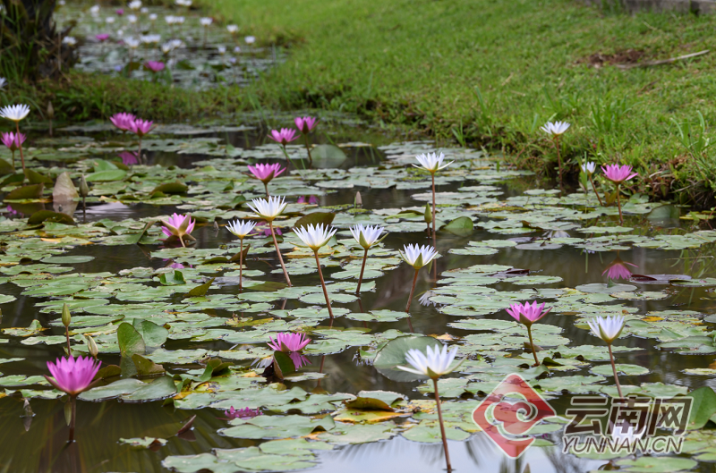 值得一提的是,园内除了叶片巨大的王莲,娇艳欲滴的睡莲花也开满水面,构成又一道靓丽的风景线,令人流连忘返。