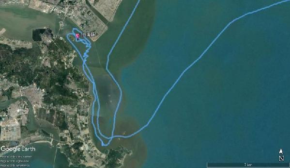 图:当天的航迹,红色标记的是小海豚刚被发现的坐标。