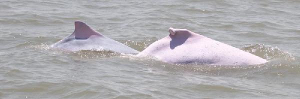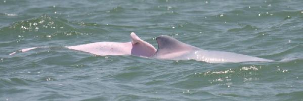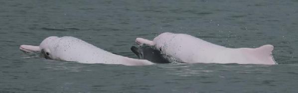 两只白海豚带着一只小海豚。郑锐强 摄