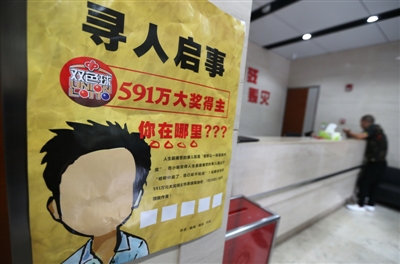 四川省福利彩票发行中心的兑奖大厅张贴着“寻人启事”