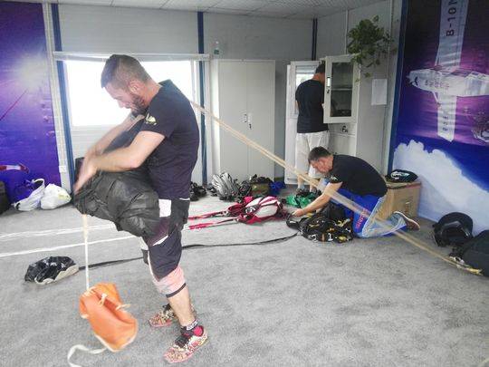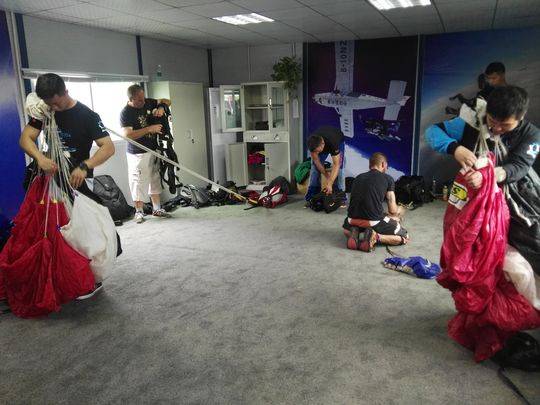 9月7日10时,自贡市贡井区航空产业园,一架载着数名跳伞队员的飞机呼啸而起,升上天空进行跳伞表演。当天,自贡跳伞航空飞行营地正式投入运营,系川南首个跳伞基地。