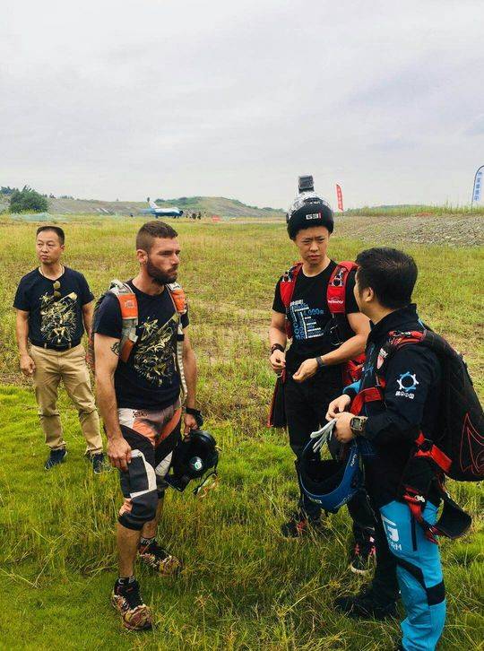 “快看!跳伞了!”飞机在空中不断往来盘旋,大约三四十分钟后,飞机后部出现了两个黑影,现场一片欢呼。仅仅过了几分钟,四名跳伞队员陆续降落到地面。“跳伞的天气条件,只要云高有1500米,就可以进行跳伞运动。从飞机起飞到跳伞队员降落到地面,大约1小时的时间。”