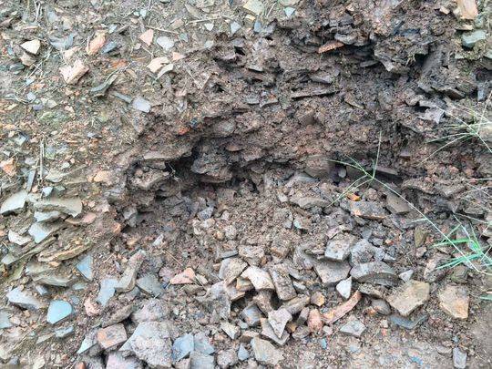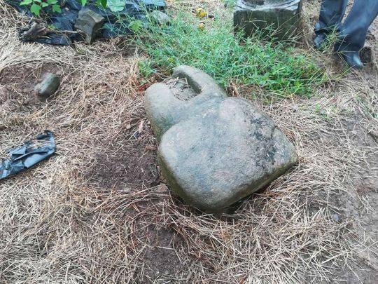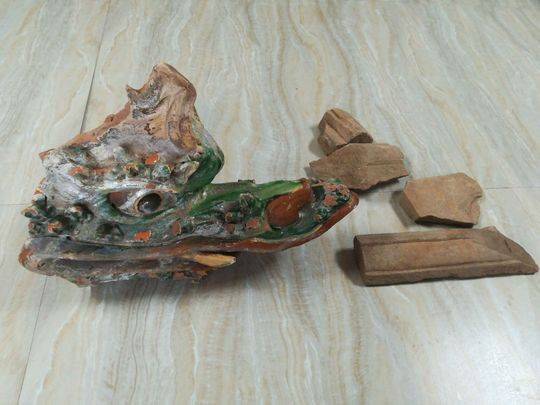 今年年初,泸州市合江县合江镇贯湾村的吴家滨,修整自家种的千亩柑橘林,原本计划用挖土机推土,修建一个观景台,但却没想到一挖就挖出了很多琉璃瓦片。仔细一清理,这里面有古代的砖瓦、石柱础、石碑、琉璃龙头、石头神像等文物。