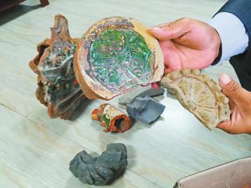 “吓了一大跳!”说起这些文物的发现,今年51岁的吴家滨回忆道,今年年初的一天,他找来工人打算在自家柑橘林中建个观景台,以发展乡村旅游业。然而,“一推,就发现了很多琉璃瓦片。”